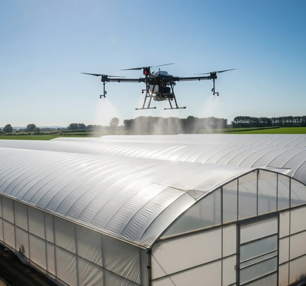 • Efektivitāte – precīza izsmidzināšana, kas nodrošina augstu kvalitāti un vienmērīgu pārklājumu visā siltumnīcas platībā